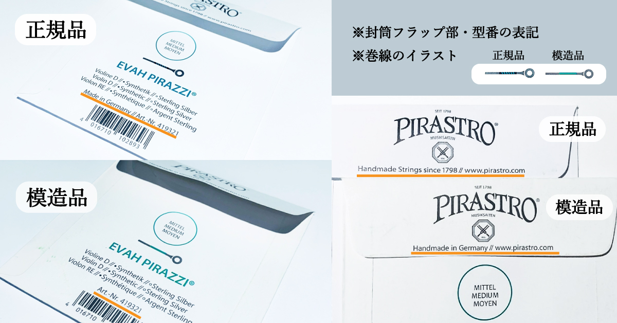 国内の店舗やECサイトにおきまして、ヴァイオリン弦EVAH PIRAZZIの模造品の販売が確認されております。